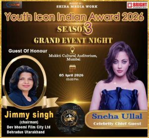 मुंबई ! पिछले दिनों मुक्ति कल्चर हॉल में आयोजित “यूथ आइकन इंडियन अवॉर्ड्स” का भव्य आयोजन किया गया। जहां बॉलीवुड, राजनीति, प्रशासन, हर क्षेत्र के लोग शामिल हुए। शो की उद्घोषक जानी मानी एक्टर, मॉडल मिस इंडिया रह चुकी सिमरन आहूजा थी। जो अपनी प्रस्तुति से समा बांध दिया। जहां हर क्षेत्र से आए धुरंधर लोगों को अवॉर्ड और पुष्पगुच्छ से सम्मानित किया गया। वही समाजसेवी और